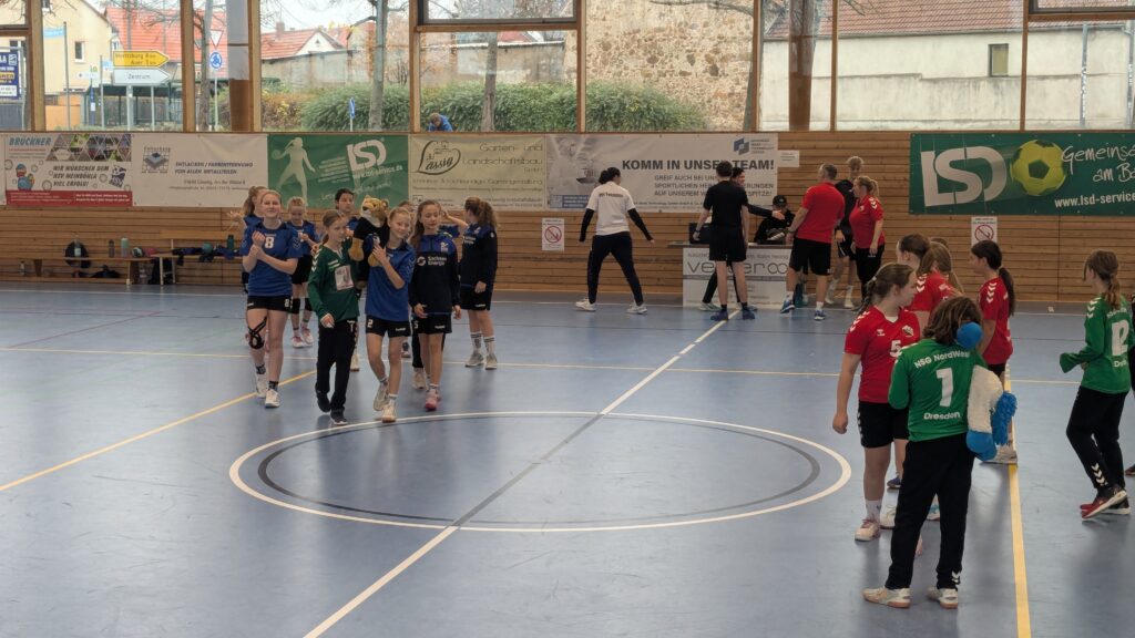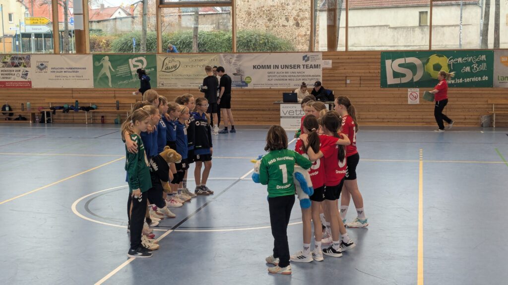 Vom letzten Erfolgswochenende noch beflügelt, begann man das Spiel gegen die mittlerweile zu „NSG Nord West“ umbenannte Dresdner Mannschaft, sehr souverän und erhobenen Hauptes. Unsere Mädchen ließen sich zu keiner Zeit von den Gegnern aus Dresden in irgendeiner Weise verunsichern – spielten einfach frei auf. Das erste Tor in dieser Partie fiel auf Seiten von Weinböhla nach einer Minute Spielzeit – bis zur 12. Minute erarbeiteten sich die Mädels sogar einen 6 Tore Vorsprung und zwangen außerdem die Gegner zur ersten Auszeit. Doch auch diese brachte den Dresdnern nicht den gewünschten Torerfolg. Lediglich 1 Tor ließ der HSVW in den verbleibenden 8 Minuten noch zu. Klasse Mädels!