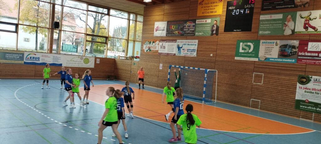 Man ging relativ schnell in Führung und die anwesenden Fans schöpften Mut für die Partie. Doch leider konnte man wieder in der Abwehr nicht die nötige Aufmerksamkeit im Zweikampf an den Tag legen. Zudem waren die HSVW-Spielerinnen immer einen Schritt langsamer als die Gegenspielerin. Die einzelnen guten Angriffe unserer Mädels verpufften in unpräzisen Abschlüssen. Diese wurden oft mittig platziert und waren damit eine leichte Beute für die gegnerische Torhüterin. Somit stand es nach 10 Minuten auf der Anzeigetafel schon 2:8 für die Gästemannschaft. Durch gute Anspiele an den Kreis und einer Einzelaktion konnte man bis zur Halbzeit noch 4 Tore erzielen. Aber der Halbzeitstand war mit 9 Toren Unterschied doch sehr deutlich.