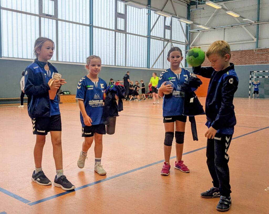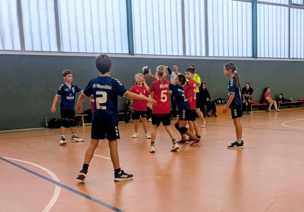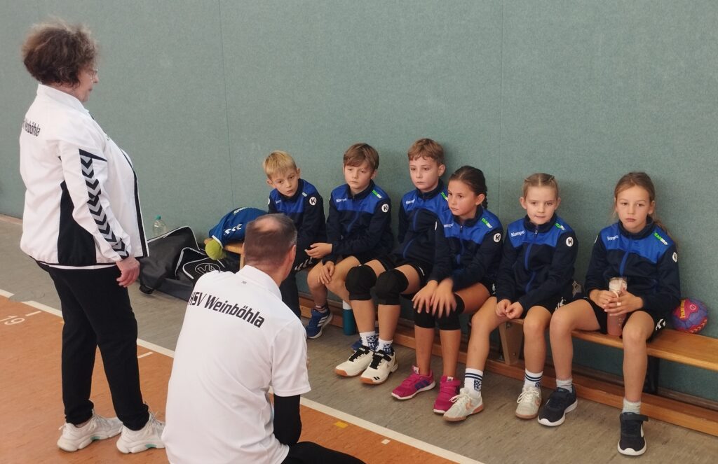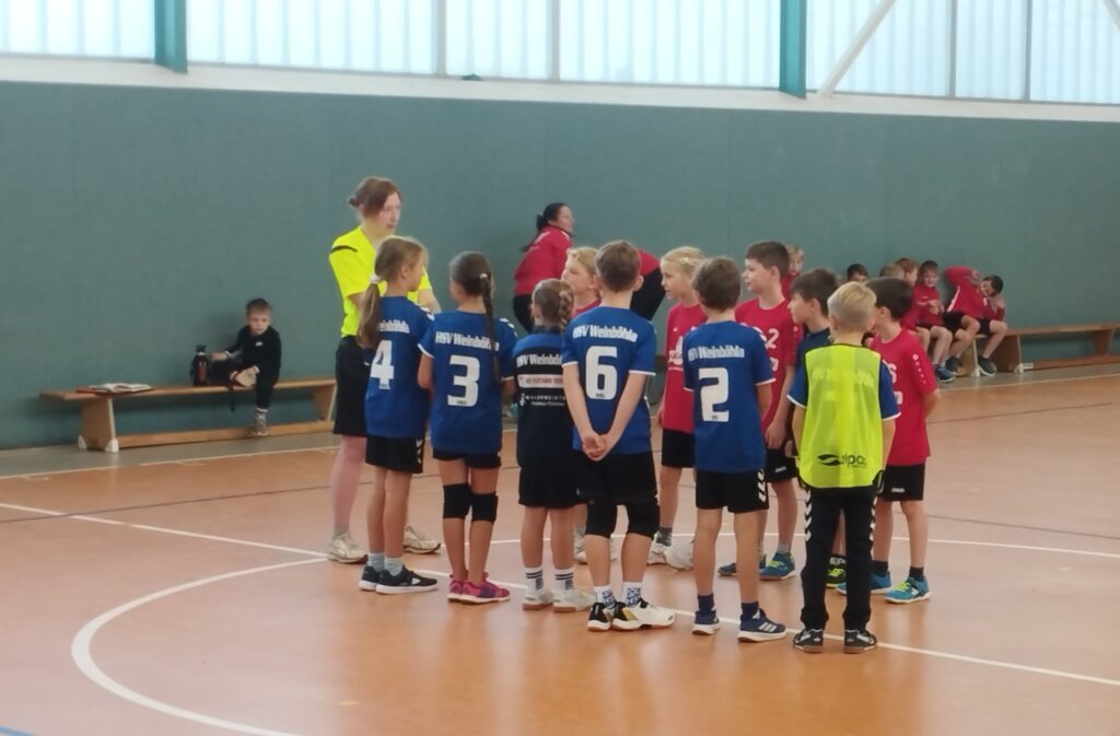 Am Sonntag den 26.10.2025 startete die 1. Mannschaft unserer gemischten F-Jugend in den Punktspielbetrieb und in heimischer Halle sollten die Punkte in Weinböhla bleiben. Die erste Vertretung des Radebeuler HV war der Gegner im ersten Spiel und die neu formierte Mannschaft um das Trainergespann Katrin und Henry wollte sich erst einmal finden. Im Training spielte man schon oft zusammen, doch im Spielbetrieb ist das immer etwas anderes. Die Jungs und Mädchen des HSVW hatten von Beginn an wenig Schwierigkeiten im Zusammenspiel und man zeigte auch eine gute Abwehrarbeit. Durch gut vorgetragene Angriffe war man schnell auf der Siegerstraße und man verließ diese bis Spielende auch nicht. Somit konnte man mit 11 Toren Unterschied gewinnen.