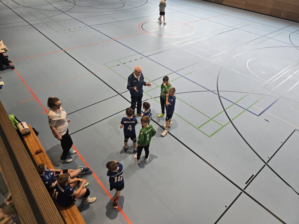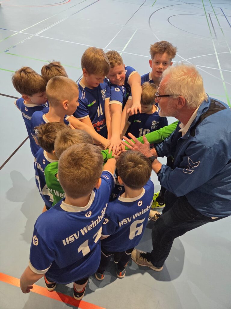 Ins erste Spiel startete der HSVW als Favorit, zumindest laut aktueller Tabelle. In diese Rolle fand die Mannschaft jedoch erst ab Mitte der ersten Hälfte. Bis dahin gestaltete sich die Partie ausgeglichen und kein Team konnte sich entscheidend absetzen. In Abwehr sowie auch im Angriff fand sich der HSVW nun immer besser zusammen und konnte bis zum Pausenpfiff eine Führung von fünf Toren erzielen (8:13). Die starke Verteidigung und der Zusammenhalt in der Vorwärtsbewegung machte es dem Gegner immer schwerer zum Abschluss zu kommen. Dennoch vorhandene technische Fehler und auch ein vergebener Penalty-Wurf änderten nichts mehr am Sieg für die Weinböhlaer Jungs (17:23).